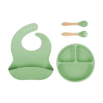 4PCS Silicone Baby Feeding Set with Suction Bowl, Spoon & Fork - Colorful Design