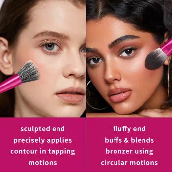 Double-Ended Makeup Brush for Flawless Powder, Contour & Highlight